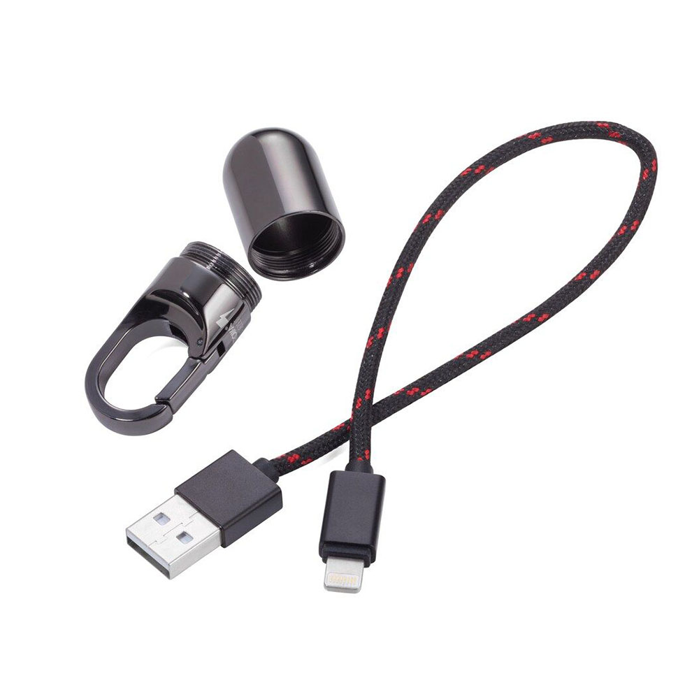 Отличное решение для любителей активного отдыха – карабин с кабелям для зарядки iPhone. С одной стороны – карабин, а с другой – карабин, который быстро превращается в USB-кабель lightning. Карабин выполнен с металла, кабель сделан из прочного текстиля и нейлона.