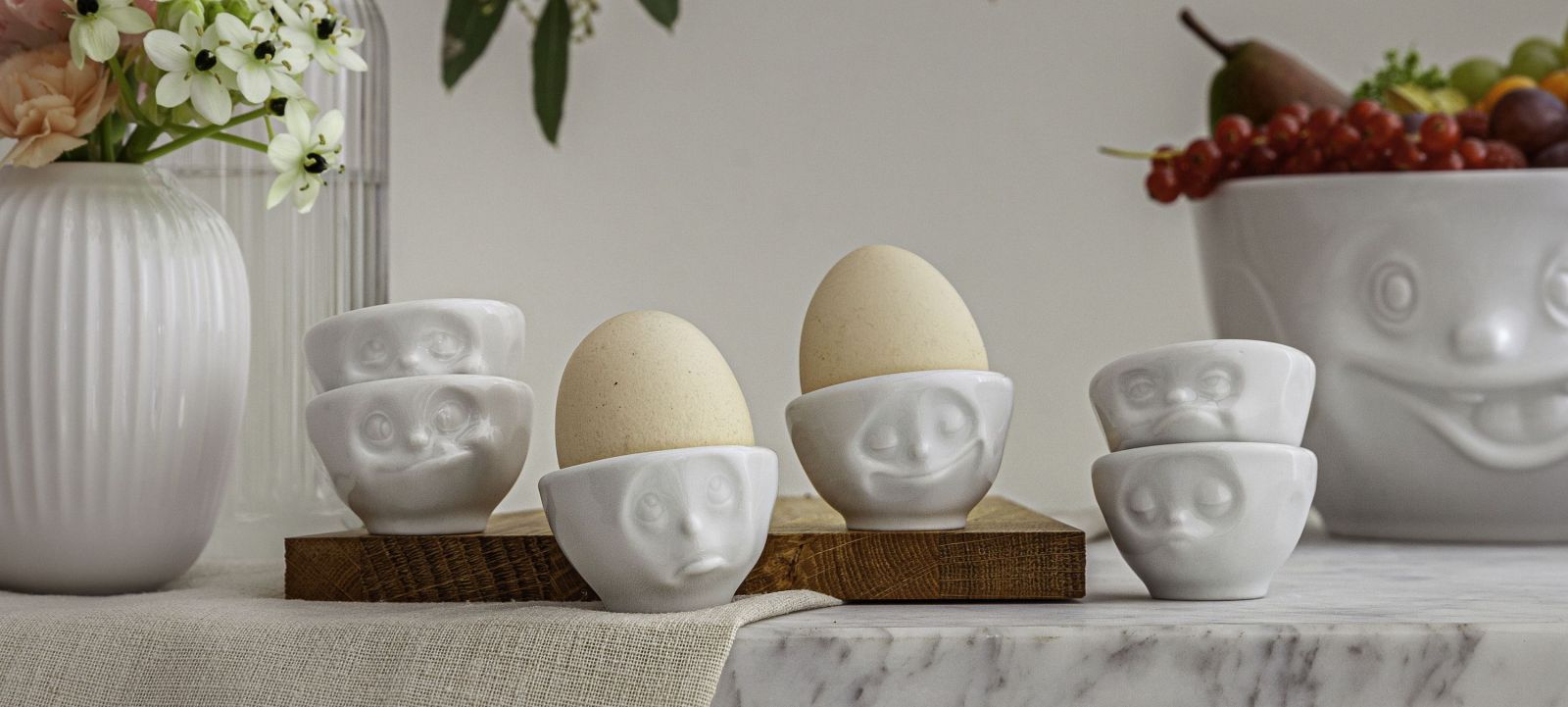 Набор из двух фарфоровых подставок для яиц Tassen Счастливая улыбка и Хмм