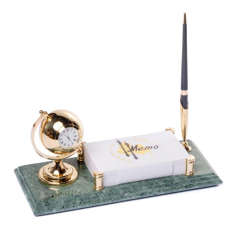 Подставка на стол руководителя BST с ручкой с держателем для бумаг и часами мраморная, 24х12
